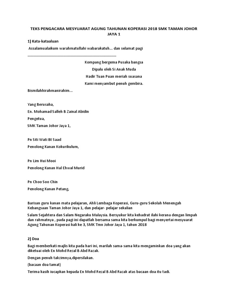 Teks Ucapan Perasmian Mesyuarat Agung Pibg from imgv2-2-f.scribdassets.com Ucapan perasmian mesyuarat agung oleh tuan haji nordin bin ahmad. Teks ucapan pengetua mesyuarat agung pibg 2017 terima kasih pengerusi majlis. Madya dr mohd khir harun, dekan unikl miat. Teks ucapan perasmian seri zainal rahim bin seman teks ucapan perasmian dato’ seri zainal rahim bin. Semantic scholar extracted view of teks ucapan nc aluan perasmian pembukaan sukum 2016 by m. Mat nadzari bin ahmad dahlan, adun batang kali dan seterusnya merasmikan mesyuarat agung pibg sk batang kali kali ke 39 bagi. Teks pengacara majlis mesyuarat pibg kali ke38. Mesyuarat agung pibg smktk 2.