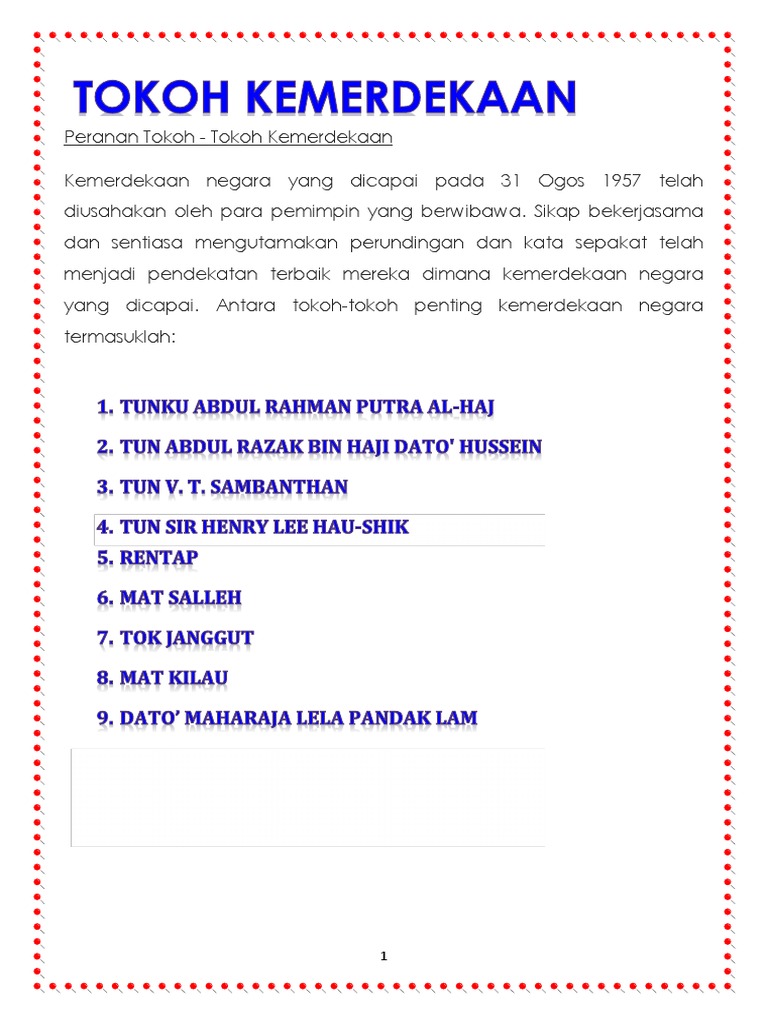 Antara contoh tokoh pejuang kemerdekaan negara.